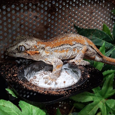 Naaras. Tykkää vihanneksia, matoja ja sirkkoja. Syö paljon. Tykkää päivisn ulkoilla huoneessa.