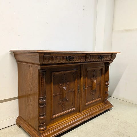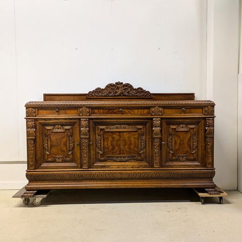 Vanhan ajan komea suurehko senkki myytävänä. Rakenteeltaan kaikin puolin ehjä ja tukeva. Kannessa kuvan mukaista jälkeä. Kannen päällä ollut aikanaan yläosa. Avaimet tallessa ja lukot toimivat. Ovi aavistuksen kiero, mutta saa lukkoon kevyesti työntämällä. Ei hajuja.