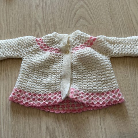Käsintehty söpö neuletakki. Sopinee 56-62 cm kokoiselle.