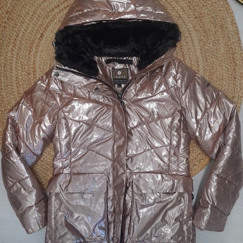 Supercool ja laadukas Luhta Haijais (keinountuva) toppatakki. Värinä himmeä kulta. Istuu todella hyvin. Koko 36, istuu hyvin kokoja 34-38 käyttäville. Käyttämätön, vain sovitettu. Haikein mielin myyntiin kaappitilaa puutteen vuoksi.