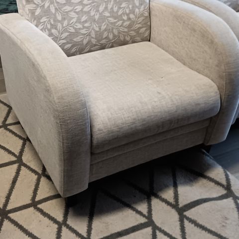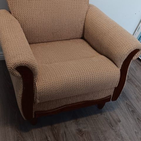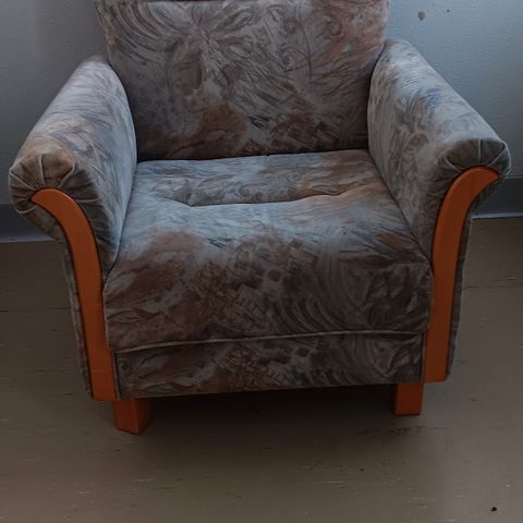 Myydään nojatuoli, väri beige - ruskea. Vähällä käytöllä ollut, tukeva ja hyvä istua. Ei vain itselle enää käyttöä. Tuolin suojana aina ollut peitto/huopa, joten on tahraton. Eläimetön ja savuton koti. Nouto Kiuruvesi, keskusta. 40€.