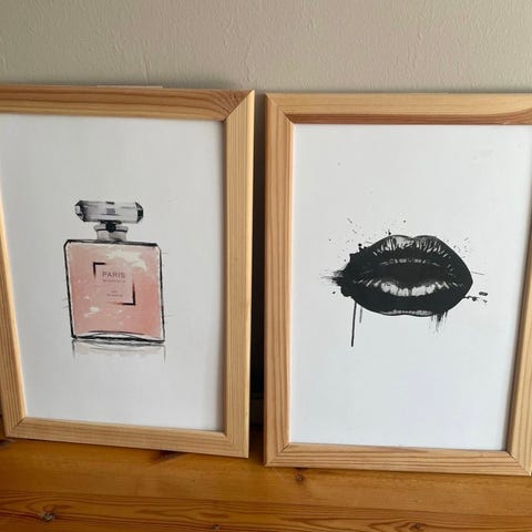 Kehykset saa kaupanpäälle halutessaan (kehyksien lasi mennyt rikki). Kaikki muut käyttämättömiä paitsi kaksi alinta olleet kehyksissä seinällä.