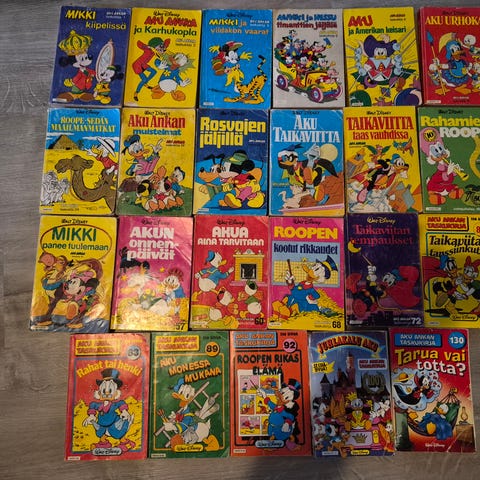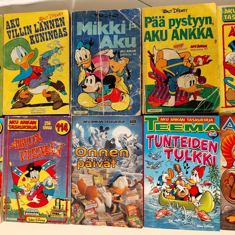 Myydään Aku Ankan taskukirjoja. Kaikki luettavassa perus siistissä kunnossa, ei uusia.