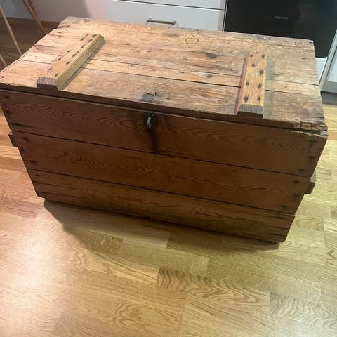 Myydään vanha puulaatikko. Mitat: 61x33x34 cm. Ikäisekseen hyvässä kunnossa.