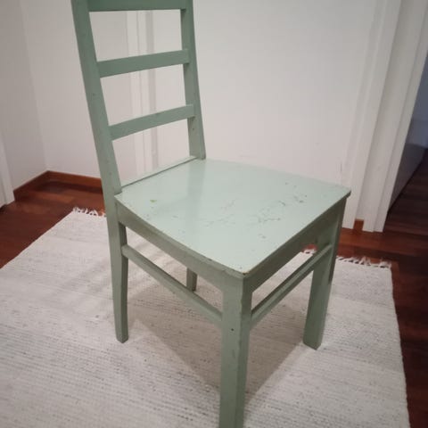 Maalattu ruokapöydän tuoli.