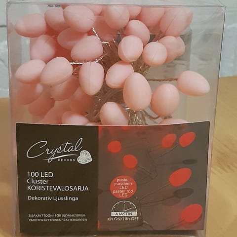 Paristokäyttöiset (2xAAA) koristevalot 3kpl. Sisäkäyttöön. Ajastin, syttyy samaan aikaan päivittäin ja on ajan x päällä. (Ehkä 6h tai 8h)