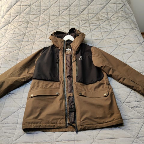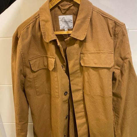 Construen topattu ja tikattu takki. Vihreä. Kokolappua en löytänyt mutta arvioisin että on L kun miehelle hieman pieni. Käytämättä jäänyt. Stockmannilta ostettu