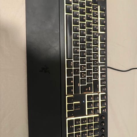 Practically new, I used it a couple of times but then replaced with a US Layout. This is a great keyboard for someone that is used to the Nordic key layout. Also it has lots of pretty lighting options.