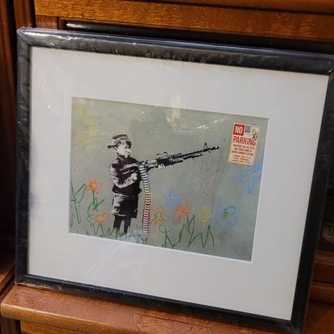 Banksy kehystetty printtikuva Mobile Phone Lovers