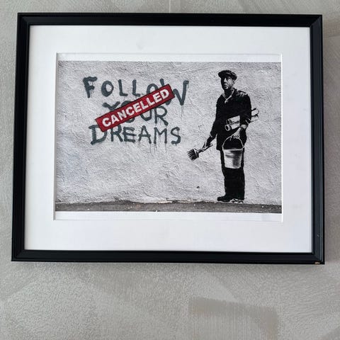 Kehystetty Banksy printtikuva ”Mobile Phone Lovers”