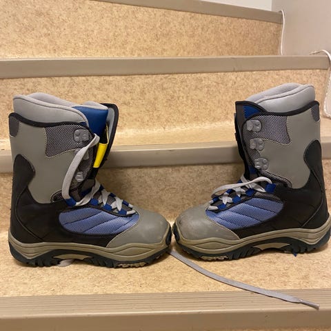 Lumilautakengät, koko 38 (EUR). Kengät ovat väriltään mustat ja harmaat. Käytetyt mutta toimivat! Jos hinta huimaa päätä niin voi yrittää tinkiä!!