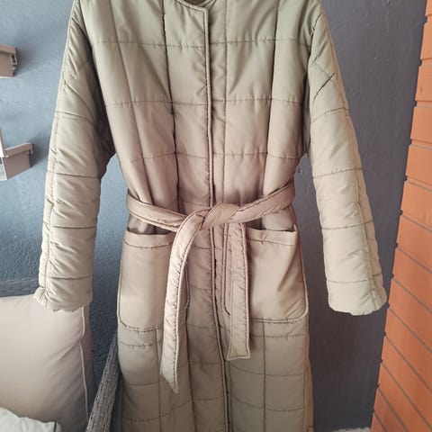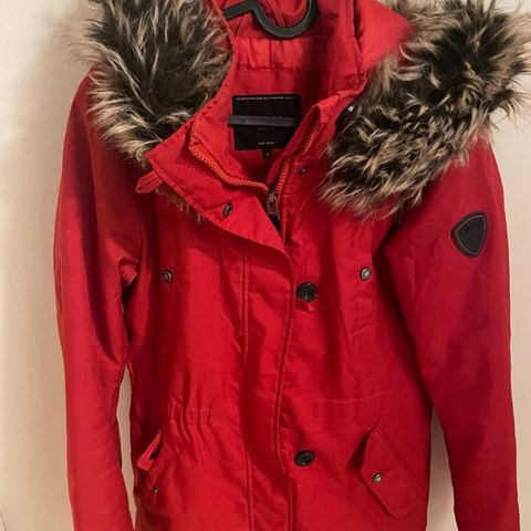 Vero Moda merkkinen vihreä, puolipitkä talvitakki. Hupussa karvareunus. Hihoissa resorit, mutta kangas tulee osittain päälle. Vetoketju ja nepparit. Rintamuksessa vetoketjulliset taskut. Toiset taskut lähellä helmaa. Hyvä kunto, jossain voi olla tummentumaa, mut värin takia huomaamaton. Koko S