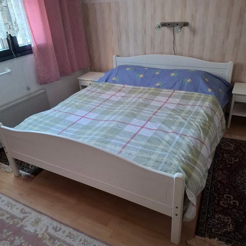 Hyväkuntoinen parisänky. Sisältää petauspatjan.