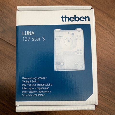 Uusi Theben Luna 127 star S hämäräkytkin, IP56-suojaluokka. Soveltuu valaistuksen ja muiden sähkölaitteiden ohjaukseen. Suunniteltu kestämään kosteita ja pölyisiä ympäristöjä.