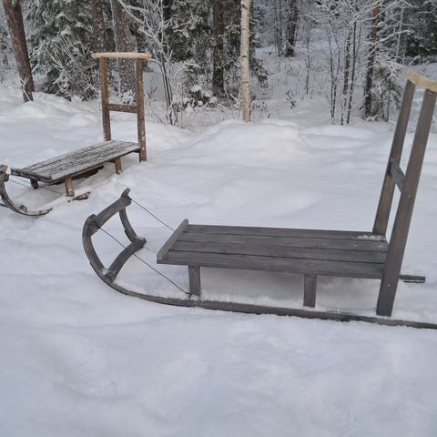 Puunajoon pitkätelanen kelekka. Tai sitte suomenhevosta voi tarjota.