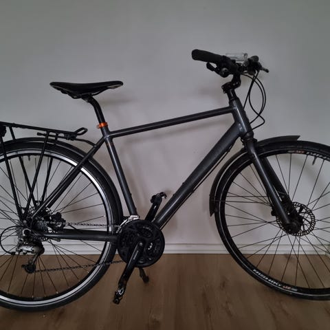 Huollettu ja kunnostettu laadukas Nishiki Race Hybrid Pro SL -hybridipyörä. Rungon koko 56 cm (sopii noin 175–190 cm pyöräilijöille) ja renkaiden koko 28". 27v Shimano Altus -vaihteisto ja V-jarrut.