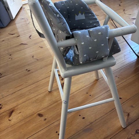 Kinderkraft Syöttötuoli on lasten istuin, jossa on pehmustettu harmaa ja valkoinen kuviollinen kangaspäällinen. Tuolissa on leikkipaneeli, joka sisältää erilaisia leluja ja säätimiä. Rakenne on tukeva ja valmistettu valkoisesta ja harmaasta muovista ja metallista. Tuoli on suunniteltu lasten syöttöön ja tukee lapsen istuma-asentoa turvallisesti.