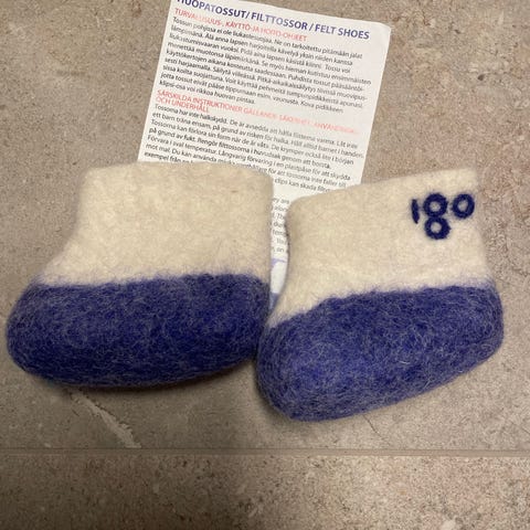 Lasten huopatossut. Sisämitta noin 17,5cm. Ollut noin 28-29 jalassa muistaakseni. Pohja repsottaa sieltä täältä mutta saa luultavasti liimaamalla takas