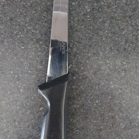 Uudenveroinen Marttiinin fileerausveitsi kumikahvalla ja nahkatupella, terän pituus 19cm.