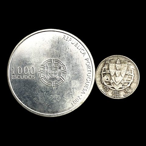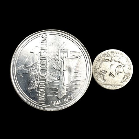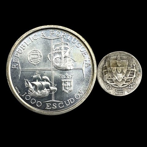 Portugal2 hopeakolikkoa (1x 1000 Escudos + 1x 2,50 Escudos) kolikkoja (30,50 g)1000 Escudos (D João de Castro)2000Kolikot › Käytössä olevat muistomitalit: Järjestelmä 1981-2001 – João de CastroHopea (.500) • 28,2 g • ⌀ 40,1 mmKM# 732, Gomes# R 171.01, N# 155662,50 Escudos - 19401932–1951Kolikot › Standardikäteiskolikot: Järjestelmä 1927-1968Hopea (.650) • 3,5 g • ⌀ 20,5 mmKM# 580, Gomes# R 30, N# 3710{ToimitusilmoitusHuomaa, että emme tarjoa yhdistettyä toimitusta. Jokainen ostettu tuote lähetetään erikseen, ja jokaiselle tilaukselle sovelletaan erillisiä toimituskuluja.Tämä politiikka mahdollistaa huolellisen käsittelyn ja nopeamman, turvallisemman toimituksen jokaiselle osalle.Arvostamme ymmärrystänne ja olemme käytettävissänne mahdollisissa lisäkysymyksissä.