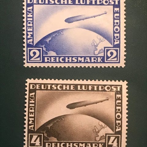 Saksan valtakunta 1934 - Lilienthal ja Zeppelin lentoposti - Michel 529x / 539x