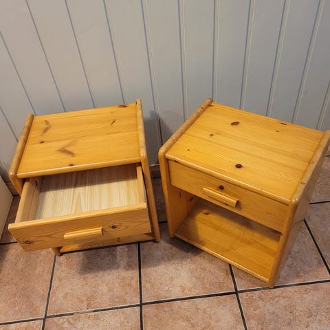Yöpöytä, jossa on jalat ja yksi laatikko. Värit valkoinen ja puunvärinen. Sopii makuuhuoneen tai olohuoneen kalusteeksi.