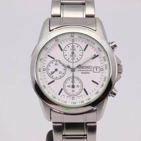 Malli: Seiko SNDA75P1 musta kellotaulu, kronografinen kvartsikelloRuostumaton teräsKellonäytön väri: MustaIstuvuus: Sopii enintään 16,5 cm ranteeseen. Ei ylimääräisiä lenkkejä.Kellonkehyksen koko: 41 mm (pois lukien kruunu)Liike: Seiko 7T92 Quartz chronograph movementVirranvaraus: Enintään 2 vuotta.Toiminnot: ajanotto, kronografitoiminnot, 1/20 sekuntia, päivämäärän näyttö, hehkuvat osoittimet ja tuntimerkinnät—// TOIMITUKSEN SISÄLLÖT //—EiAlkuperäiset asiakirjat: Ei—// EHDOT //—Kotelon kulumaa: *(*) [joitakin kulumisen merkkejä kotelossa, pieniä hiusviivoja ja kevyitä naarmuja]Takakannen kulumaa: * [joitakin vaaleita hiusnaarmuja]Kulumaa kristallissa: * [jälkimarkkinoilta saatava kaksinkertaisesti kupera mineraalilasi]Kellotaulun kuluminen: -Kuluma käsissä: -Bezelin kulumaa: *(*) [joissakin kohdissa maali lähtenyt pois merkintöjen "140", "250", "300" kohdalta. Pientä kulumaa hiusnaarmujen ja kevyiden naarmujen kera]Kruunussa: * [joitakin kevyitä hiusviivoja]Rannekkeen tai hihnan kulumaa (kuten yllä mainittu sovitus): *(*) [Seiko S/S ranneke, 15 linkkiä kiinnitetty rannekkeeseen. Pienet kulumisen merkit, hiusviivat ja kevyet naarmut]// Kuntoarvion standardi //- Ei mitään (paras)* Merkityksetön** Vähäinen*** Keskikokoinen**** Raskas***** Vaurioitunut (pahin)(*) puoli tähteä / Välitila— // KOKONAISARVIO //—ARVIO: AARVOSTELUN OHJEN [As Brand New] -tuote ei ole koskaan ollut käytössä.S [Superior] -tuote on kuin uusi -kuntoinen, hyvin vähäisin tai ei lainkaan käytön merkkejä.A+ [Erinomainen] Tuote on ollut kevyessä käytössä. Enimmäkseen pieniä naarmuja.Tämä [Great]-tuoteessa on pieniä naarmuja ja kulumaa, mutta se näyttää hyvältä.B+ [Hyvä] Esineessä on naarmuja ja kohtalaisia kulumisen merkkejä.B [Kohtalainen] Tuotteessa on naarmuja ja kolhuja kaikkialla. Se on silti hyvässä toimintakunnossa.V [Vintage] -tuote on yli 10 vuotta vanha ja sitä on käytetty runsaasti. Kulumisen merkkejä kaikkialla, mutta toimiva.ND [SALVAGE] -tuote on toimimaton. Tarvitsee korjausta tai osiksi.—// Toimitustapa //—Palvelutamme: FedEx Economy—[[[ Asiakkaille huomautuksia ]]]—Valokuvat- Kaikki valokuvat eivät ole retusoituja (paitsi sarjanumeroiden osalta, jotka on piilotettu turvallisuussyistä). Mahdolliset kuvaamattomat mutta näkyvät viat katsotaan kuvien perusteella kuvailluiksi. Kuva puhuu tuhat sanaa, joten pyydämme teitä katsomaan kuvia huolellisesti ennen tarjouksen tekemistä, sillä ne muodostavat olennaisen osan kuvauksesta. Arvostan asiakassuhdettani, enkä halua olla pettymys, kun tuote saapuu ei-toivottujen tulosten kanssa.tarkkuus- Tarkkuus testataan jokaisessa kellossa vaakasuorassa asennossa (kellotaulu ylöspäin) täysin windatun varaustilan ollessa voimassa, ja sen katsotaan riittäväksi ajan pitämiseksi ennen kuin kellon toimittamme liikkeestämme. Jotkut tekijät, jotka voivat vaikuttaa tarkkuuteen, ovat ranteessa vietetty aika, käsivarren liike ja jousen jännitys. Kellot, jotka ovat yli 10 vuotta vanhoja, saattavat kokea suuremman tarkkuuden vaihtelun ja epätasaisuutta mekaanisen kulumisen vuoksi.Aitous- Kaikki myymäni rannekellot ovat aitoja. Yritän merkitä kaikki jälkimarkkinan osat, jotka pystyn identifioimaan, parhaalla mahdollisella tiedollani. Arvioi kohde kuvien perusteella, sillä ne on otettu todellisesta saamistasi tuotteesta. Kirjallinen kuvaus on apuvälineenä vain silloin, kun kuvat eivät näytä vika