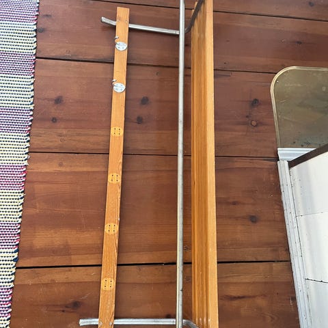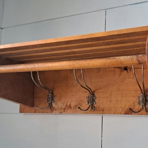 Tästä vintage hattuhylly, terästä ja lakattua puuta