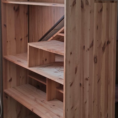 Myydään kuvan hyllykkö. L 80, S 28, K 120. Alavudella. Hyllykön saa kahteen osaan, jolloin ne voi asettaa myös vierekkäin