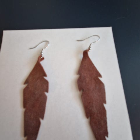 Nahkaiset ruusukullan väriset korvikset. 9 cm