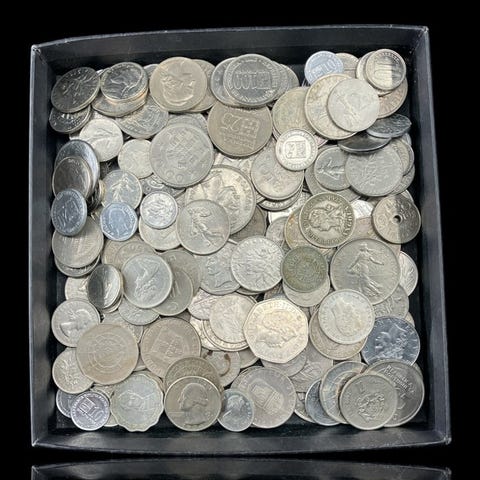Maailmasta. Erä 200 maailman kolikkoa eri maista, eri nimellisarvoja, metalleja ja vuosilukuja. Eri vuosia (varaushinta ei ole asetettu).Useita metalleja - Ilman luokitusta
