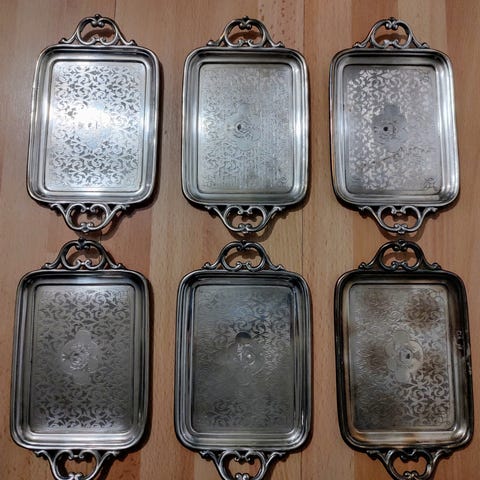 Tämä Regencia-tyylinen pöytäkoriste hopeoitua messinkiä esittelee runsasta ja teatraalista sommittelua, tyypillistä fin-de-siècle-tyylille. Malja, aaltoilevalla reunalla ja orgaanisella profiililla, nousee koristeellisen pohjan päällä, jossa erottuvat kaksi myyttistä griffin-olentoa: olentoja, joilla on leijonan vartalo ja kotkan pää, valvonnan ja voiman symboli.