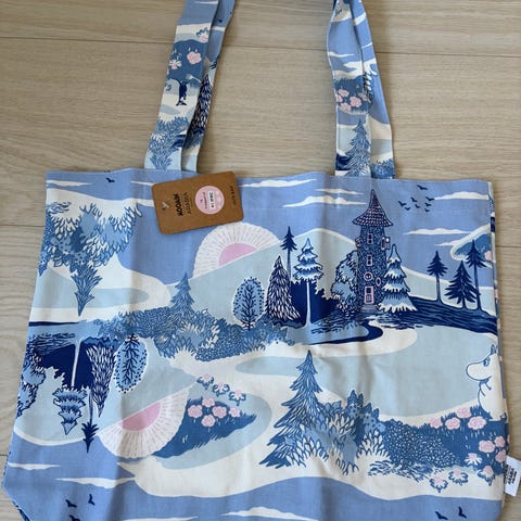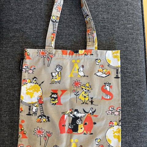 Moomin kangaskassi unisex. Väri luonnonvaalea, materiaali kangas. Sopii esimerkiksi pienen tavaran säilytykseen.