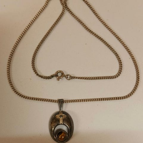 Käsityönä tehty hopeariipus. Koko noin 36 x 27 mm. Leimat takana alhaalla 925, riipuslenkissä SKI, epäselvä ja 925. Hyväkuntoinen vintagekoru, hopean patinaa.