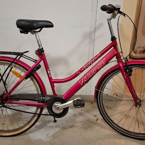 Satulassa on havaittavissa kulumaa ja pieniä naarmuja. Muuten pyörä on hyvässä kunnossa.