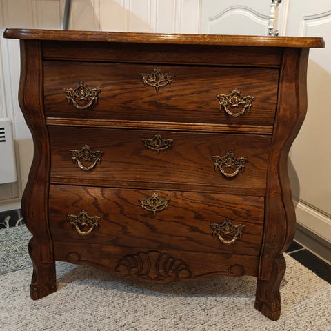Rokokoo-tyylinen huonekalu, joka edustaa 1700-luvun eleganttia ja koristeellista muotoilua. Tyylille on ominaista kaarevat muodot ja koristeelliset yksityiskohdat.