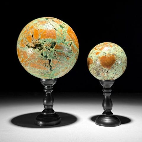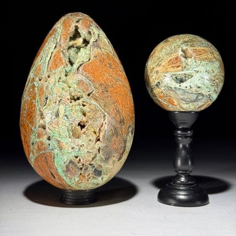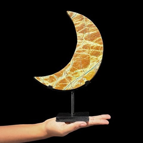 Ihastuttava kiillotettu kreegikuu-muotoinen Green Smithsonite räätälöidyllä jalustalla.Vihreä smithsoniitti, joka tunnetaan myös nimellä vihreä sinkkisavi, on mineraali, joka kuuluu karbonaatit mineraaliryhmään. Se on sekundäärinen mineraali, joka muodostuu primaaristen sinkkivarantojen rapautumisen ja hapettumisen seurauksena. Smithsoniitti esiintyy tyypillisesti eri väreissä, kuten vihreänä, sinisenä, vaaleanpunaisena, keltaisena ja ruskeana. Smithsoniitin vihreä väri johtuu usein kuparipitoisuuksista. Se on suhteellisen pehmeä mineraali, jolla on kovuus 4–4,5 Mohsin asteikolla, mikä tekee siitä naarmuuntuvia.Noin mitat mukaan lukien jalustaKorkeus: 28,5 cmLeveys: 18,5 cmVastuuvapauslausekeOle hyvä ja huomioi, että nämä kuvat on otettu pimeässä studiolla, ja värit voivat vaihdella ympäristön mukaan.> MAINITTU PAINO SISÄLTÄÄ PAKKAUSMATERIAALIN.LähetysKohde lähetetään seurantanumerolla DHL Parcelin, DPD:n tai postNlin kautta. Seuranta päivittyy Catawiki-luettelossasi, kun pakettisi on jätetty postiin.Ole hyvä ja tarkista säännöllisesti välttääksesi pakettisi palautumisen meille, jolloin ostaja vastaa toisen lähetyksen toimituskuluista.Seurantaan Espanjaan ja Portugaliin käytä tätä linkkiä ja lisää Catawiki-erästäsi saatu seurantanumero.https://clientesparcel.dhl.es/LiveTracking/HomeEMME YHDISTÄ TOIMITUKSIA!!!- Jos sinulla on kysyttävää paketistasi, ota yhteyttä meihin Catawiki-viestipalvelun kautta. Yritämme vastata kolmen työpäivän kuluessa.