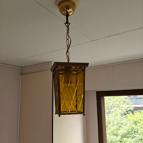 Lamppu, valaisin, kattolamppu, messinki, vanha, kupu, lasikupu, design