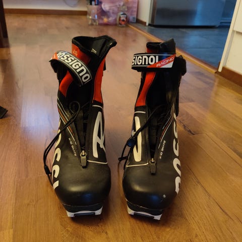 Pituus 190 cm, painoluokka n. 80 kg. Jonkin verran naarmuja pohjissa. Mukaan saa myös Salomonin monot kokoa 44.
