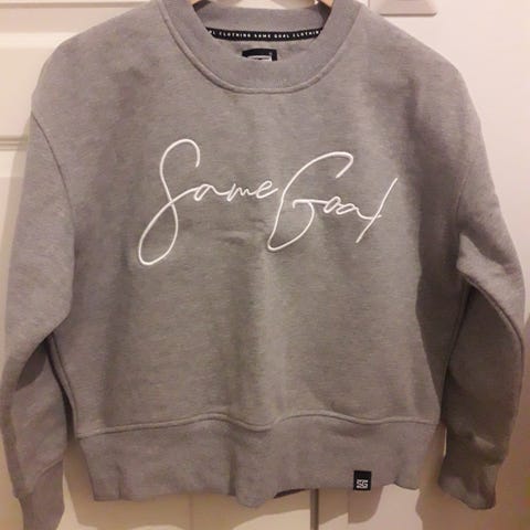 Harmaa ja todella pehmeä half zip college, koko s. Unisex koko, vastaa naisten XS-M (kuvassa m kokoisen päällä) ja miesten XS.