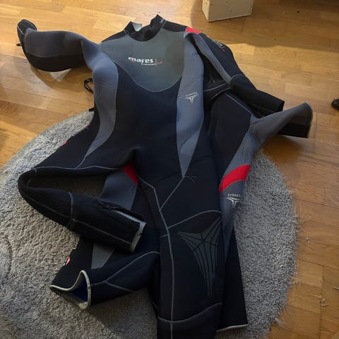 Yhden kesän sukellettu märkäpuku+hupullinen shorty+flexa fit 6.5mm hanskat. Puvun koko: 3. Sopii noin 170cm sukeltelijalle.