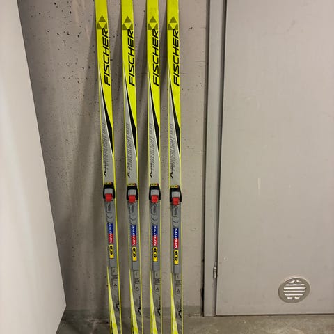 Atomic RC11 hiihtosukset sinivalkoiset, sisältäen siteet ja sauvat. Soveltuvat maastohiihtoon.