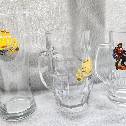 Sadoittain erilaisia tuoppeja/laseja, LASI JA MUOVI