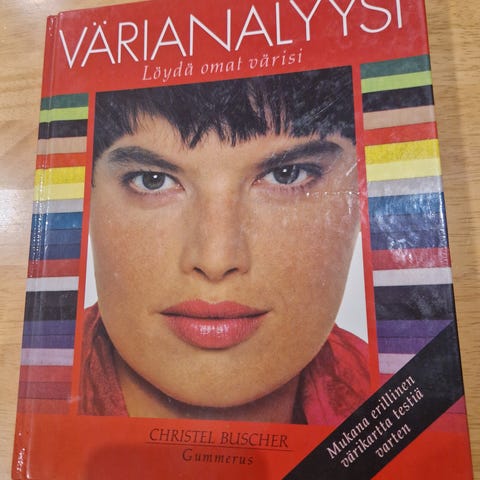 Christel Buscher Värianalyysi kirja, jossa käsitellään värien käyttöä ja analysointia. Kirja sisältää värikarttoja ja esimerkkejä eri väreistä sekä niiden soveltuvuudesta eri ihonväreihin ja tyyleihin.
