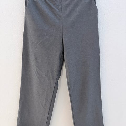 Nanson harmaat Jonna housut, koko 40. Rennon malliset, leveät lahkeet ja joustava vyötärö. Hyvässä kunnossa, mutta jostain syystä väri hieman haalistunut haaroista, tämä ei tosin erityisemmin näy käytössä. Voisi kenties korjaantua kangasvärillä