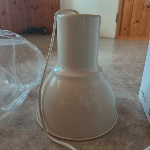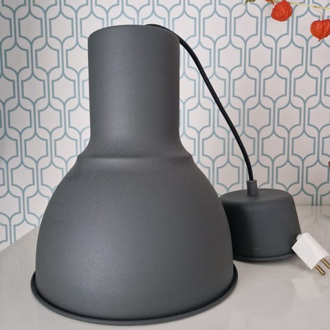 Myydään yhdessä tai erikseen matta harmaa kattovalaisin 27cm korkeus kuvun halkaisija 23cm 5€kpl