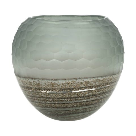 Tämä lasinen maljakko yhdistää pehmeitä, savunvihreitä sävyjä syvään tummaan raidalle, mikä luo terävän ja modernin kontrastin. Sileä, cilindrinen muoto pitää suunnittelun minimalistisena, kun taas värisävyjen kerroksellisuus lisää syvyyttä. Sopii hienovaraiseksi katseenvangitsijaksi sekä leikkokukkien kanssa että ilman.Lasista. Korkeus 26,5 cm, Ø 20 cm. Moderni ja rauhallinen designobjekti, jolla on ajaton ilme. Huolellisesti pakattu ja täysin vakuutettu toimitus.