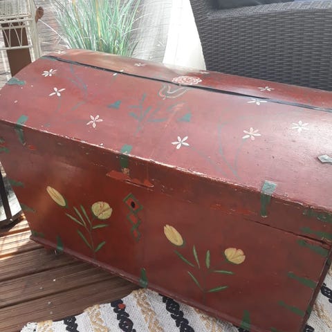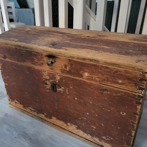 Kaunis suorakantinen arkku. Hionokuntoinen lukkko toimii!! K 43 l 82cm S 55cm