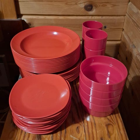 Erittäin vähän käytetty, suurinta osaa ei ollenkaan. 4 kpl per laji. Kupit, lautaset, leipälautaset, kulhot. Nouto Espoo. Myös Helsinki rautatieasema mahd.