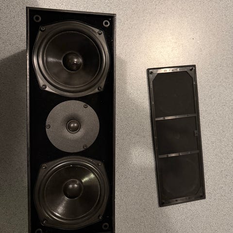 Kompakti ja laadukas keskikaiutin näppärällä seinäkiinnityksellä. Kiiltävässä pinnassa pientä ajan tuomaa patinaa, yhdestä takakulmasta lohjennut pikku pala pinnoitetta ja suojakankaassa pienen pieni, lähes huomaamaton reikä. Elementeissä ei painaumia ja soinniltaan aivan virheetön. Samoilla kuluilla tulee vaikka muutama peli tai elokuvakin.